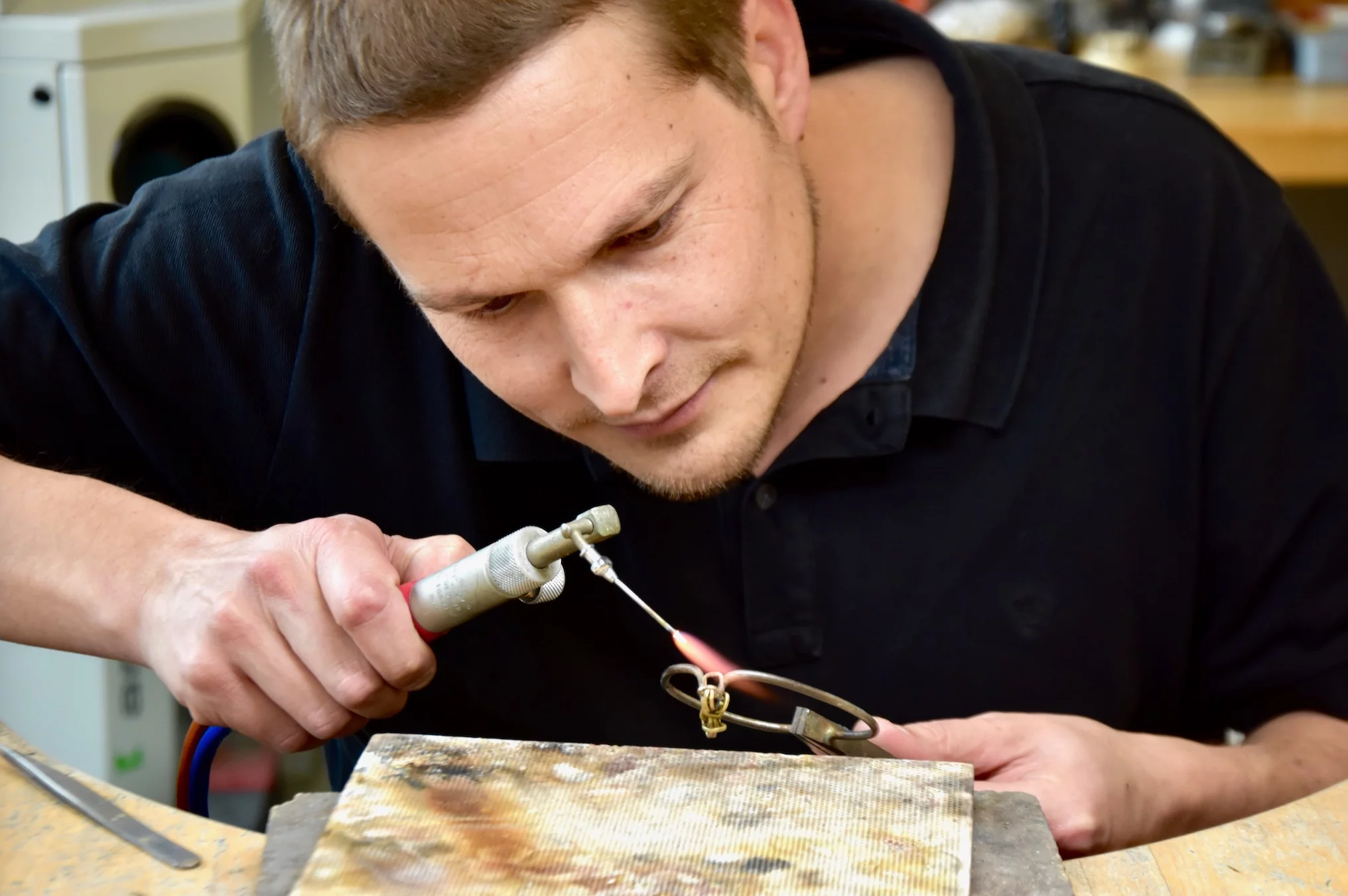 Formé à l’atelier, Jolliet écoute la matière : l’or qui se détend, l’acier qui résiste, le titane qui réclame une chaleur plus fine. Il adapte soudure, pression et ordre des opérations. Pour lui, la perfection n’est pas froide : elle doit vibrer sans faillir, couler sans accrocher, vivre sans s’affaisser.
